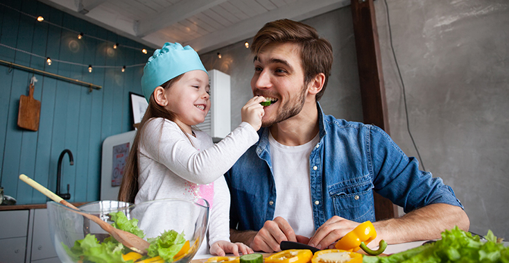 Je kind vindt niks leuker dan jou nadoen. Laat daarom zien dat jij gezond eet en drinkt en daarvan geniet. Een hap groente, een stuk vis, een aardappel: eet het met smaak op en vertel je kind hoe het smaakt. Laat ook zien dat je moeite hebt gedaan om het eten klaar te maken.