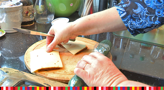 Ook heeft Elly meer regelmaat in haar eetpatroon gebracht. Ze eet nu op vaste momenten en 2 of 3 keer iets tussendoor. “Ik ontbijt nu altijd. Met yoghurt of muesli of 2 crackers met kaas of rookvlees. Ik lunch met een broodje of crackers en avondeten doe ik ook gewoon, al is het nu wel minder. Ik eet bijvoorbeeld minder aardappelen. En geen klodder saus meer. Soms neem ik ’s avonds wat droge crackers als ik nog trek heb. Of een plakje cheddar, ik ben een kaasliefhebber.”
