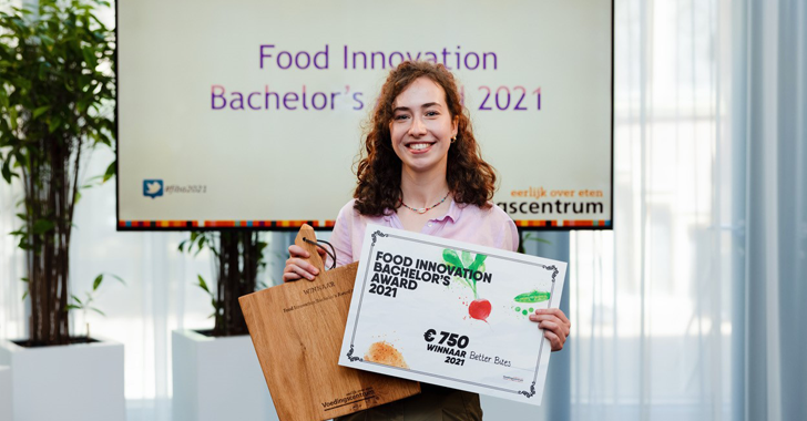 De winnaar van de Food Innovation Bachelor’s Award (FIBA) 2021 was Better Bites van Guusje van der Fleuten. Het gaat om een gezondere snack op basis van groente en peulvruchten.