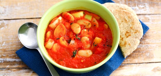 Roer de prei en de witte bonen door de soep en kook de soep nog een paar minuten.