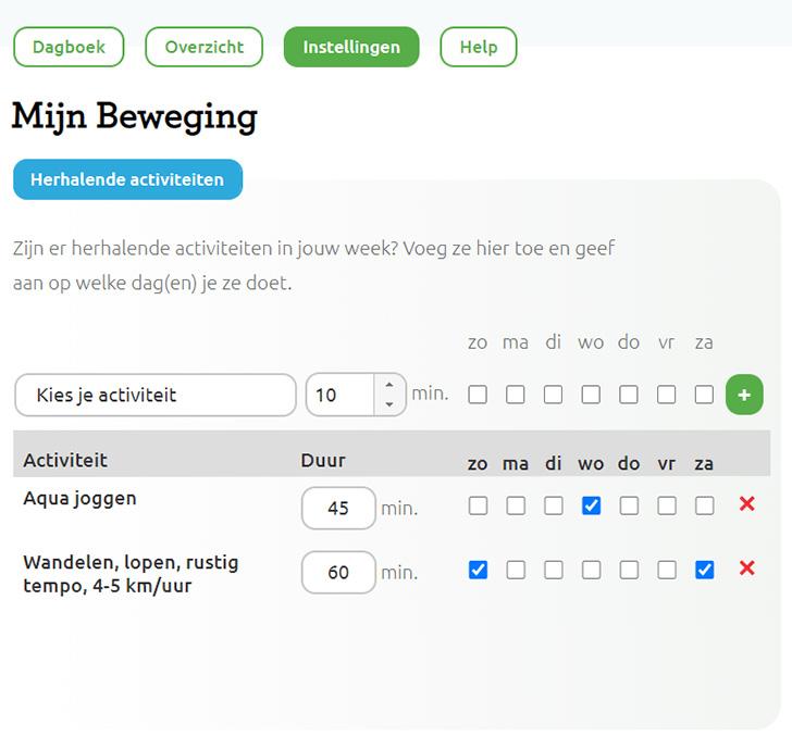Er zijn manieren om het invoeren beter te laten aansluiten op jouw wensen. Deze manieren vind je onder Instellingen dagboek: