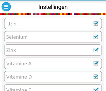 - Tussendoor: Bij het invullen van je dagboek kun je standaard kiezen voor ontbijt – lunch – avondeten – tussendoor. Wil je niet één maar 3 keer kunnen invullen wat je tussendoor eet en drinkt? Dan kan je hier instellen. Je krijgt dan dit te zien: ontbijt – tussendoor - lunch – tussendoor - avondeten – tussendoor.