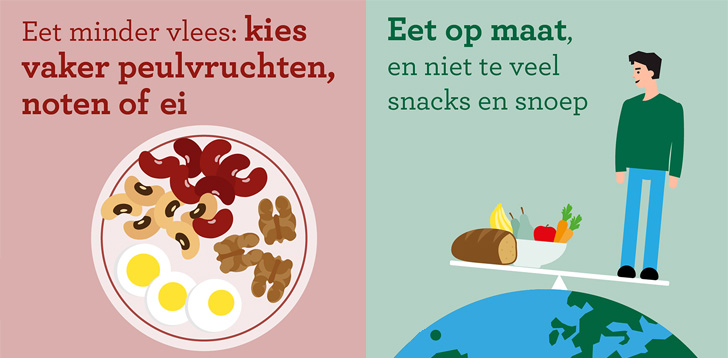 Snacks, snoep, frisdrank en alcohol belasten het milieu onnodig veel en leveren weinig voedingsstoffen en juist veel calorieën. Door gezond te eten krijg je alle voedingsstoffen binnen die je nodig hebt en heb je minder kans op overgewicht en ziekten als hart- en vaatziekten en diabetes type 2.