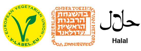 Vegetarische, koosjer en Halal-keurmerken
