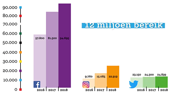• Ruim 68.000 mensen waren eind 2018 lid van de nieuwsbrief, 77.000 van het Menu van de week en bijna 10.000 van de professionals nieuwsbrief.