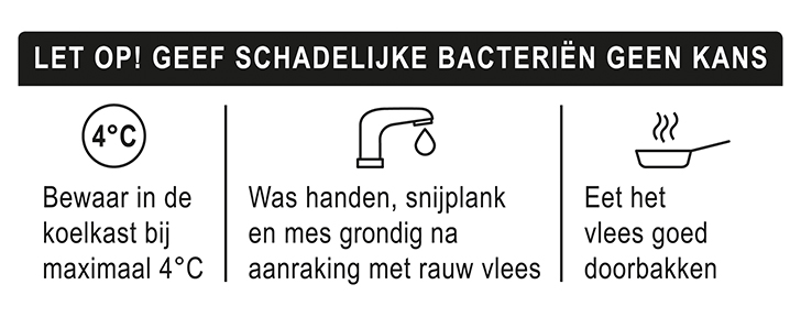 Op rauwe kip kunnen ziekteverwekkers voorkomen, zoals salmonella en campylobacter. Verhit kippenvlees daarom altijd door en door. Zo beperk je het risico op een voedselinfectie.