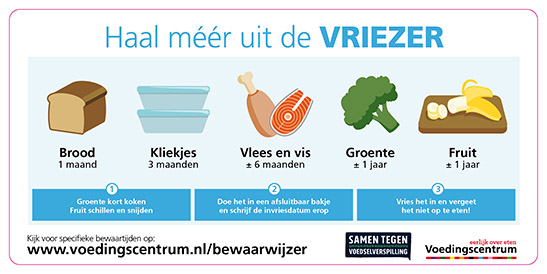 Voordeel van invriezen is dat je ook een deel van het ingevroren eten uit de vriezer kunt halen, en de rest voor een volgende keer kunt bewaren. Vries bijvoorbeeld een heel brood in en haal er telkens alleen de boterhammen uit die je nodig hebt.