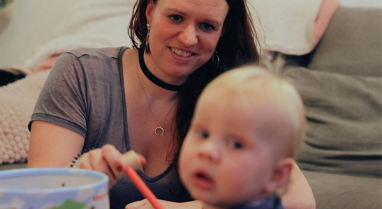 Na 10 maanden ben ik weer gaan hardlopen, dat doe ik nu 2 keer in de week. Siem maakt het me ook wel makkelijk: meestal neem ik hem mee naar verjaardagen en feestjes. En dan ben ik zo druk bezig met hem dat ik geen tijd heb om te snoepen of te snacken.”