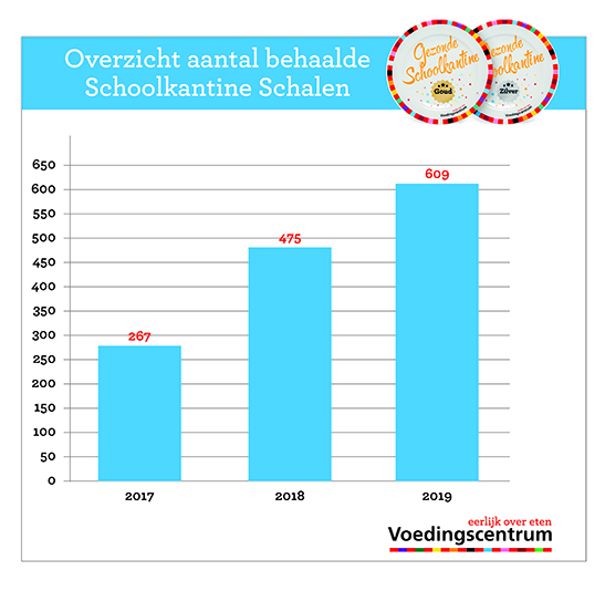 Van alle vo- en mbo-scholen die eten of drinken aanbieden, heeft tot nu toe 51,3% (963 scholen) ooit een Schoolkantine Schaal behaald. In de afgelopen drie jaar heeft 39% (731 scholen) van de scholen een schaal gekregen. Scholen krijgen deze schaal als ze een gezondere schoolkantine hebben volgens de richtlijnen van het Voedingscentrum.