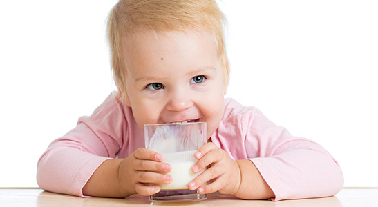 Melkproducten zijn vooral belangrijk voor de calcium en de vitamines B2 en B12. Twee bekertjes van 150 ml zijn genoeg voor een kind tot 4 jaar. Dat kan halfvolle koemelk zijn, maar ook karnemelk, yoghurt of een sojadrank met toegevoegd calcium en vitamine B12.