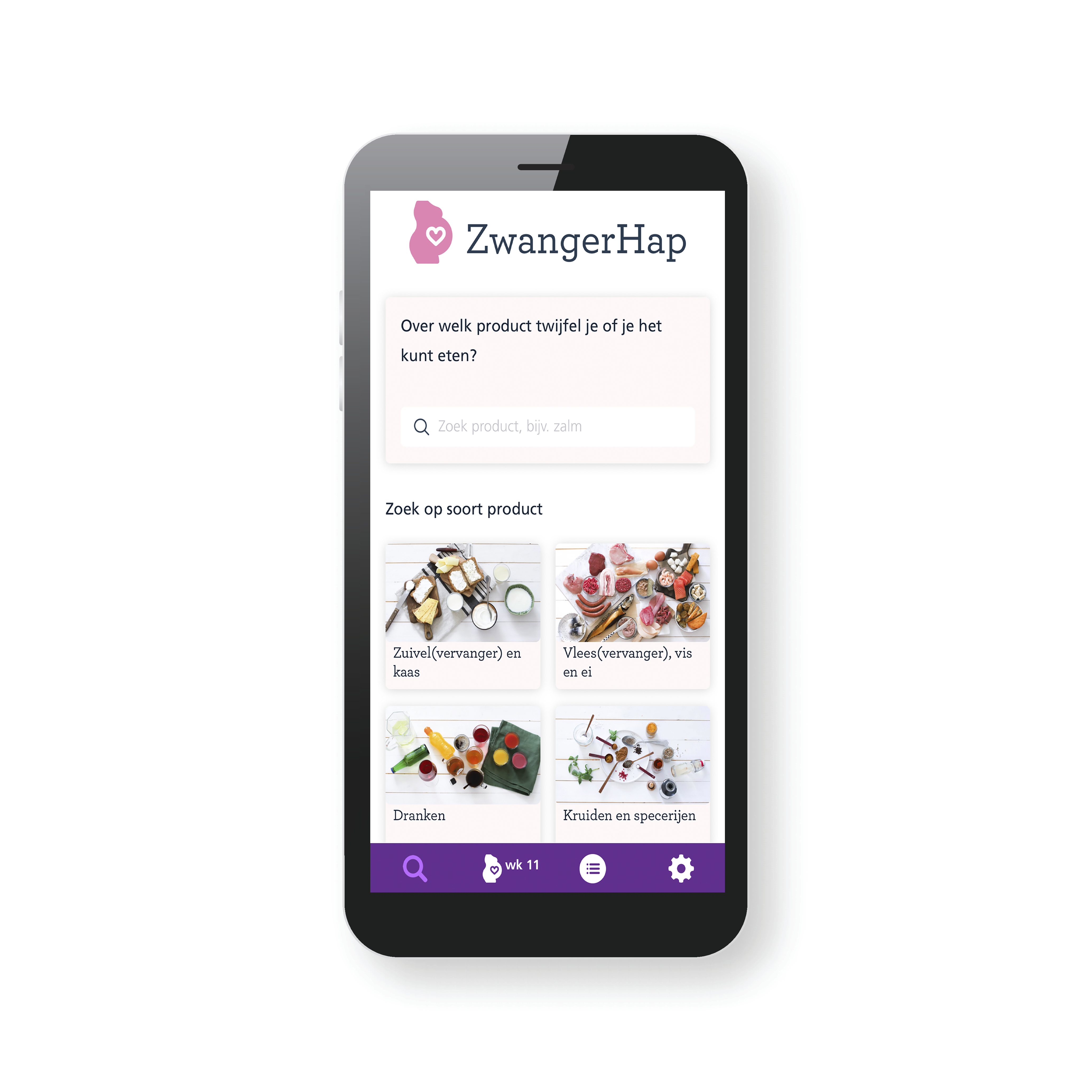 Bij veel zwangere vrouwen leeft de vraag: wat kan ik nou wel en niet eten tijdens mijn zwangerschap? Met de gratis app ZwangerHap kun je simpel en snel opzoeken of je een product kunt eten. Zo niet, dan laat de app zien wat je allemaal nog wél kan nemen.