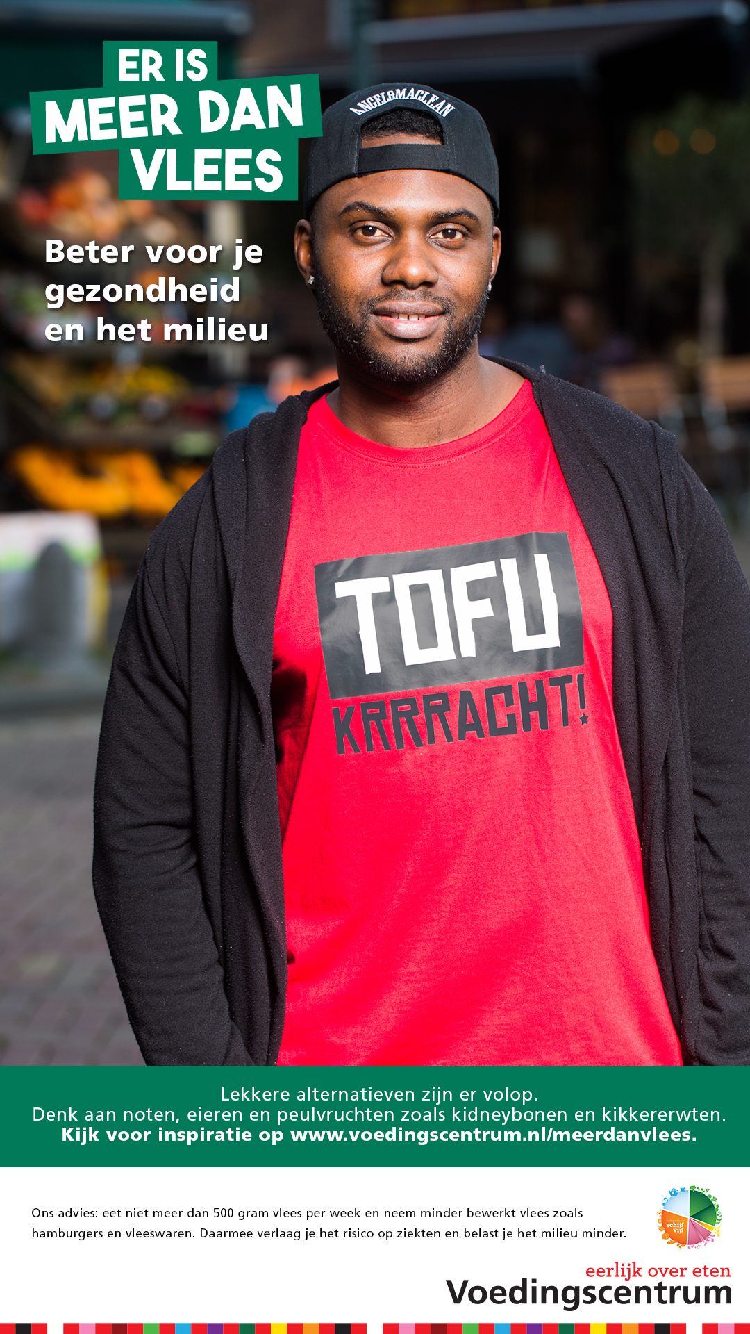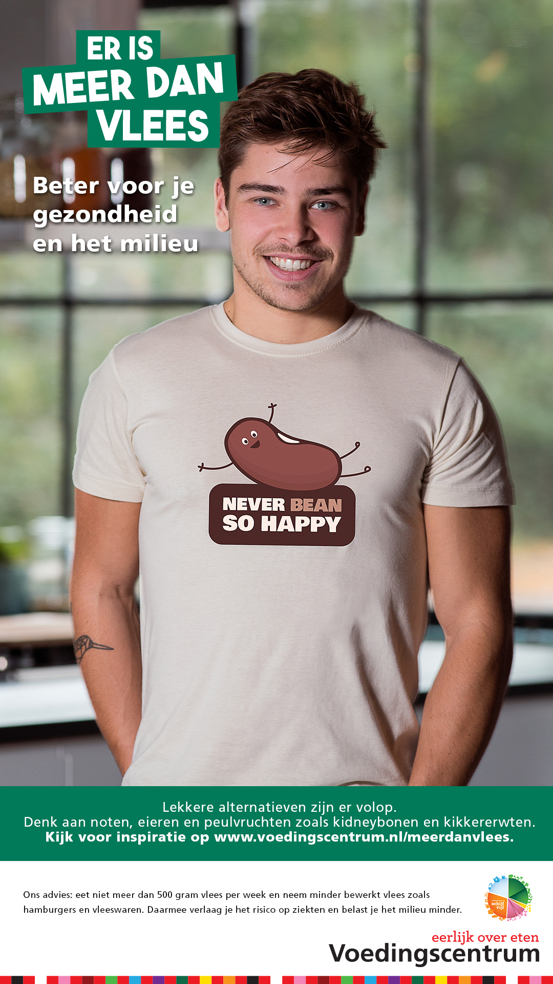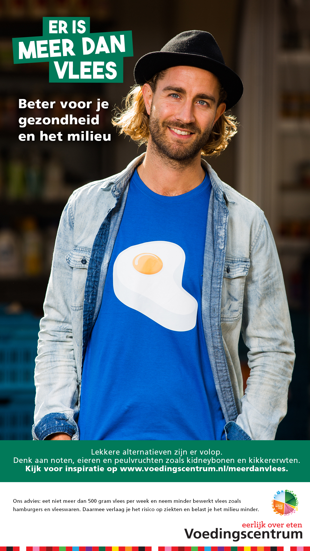 ‘Er is meer dan vlees’ laat het Voedingscentrum zien dat er volop lekkere alternatieven zijn voor vlees. Vaker kiezen voor noten, peulvruchten en ei levert winst op voor je gezondheid én het milieu. De campagne richt zich vooral op mannen, omdat zij gemiddeld zeker 500 gram minder vlees zouden kunnen eten per week om aan de aanbevelingen van de Schijf van Vijf te voldoen.