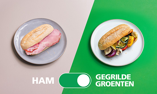 Ham komt van het varken. Een varken is minder goed voor het milieu dan groente. Varkens hebben meer land, voer, energie en water nodig. En groente van het seizoen heeft een lage milieu-impact.
