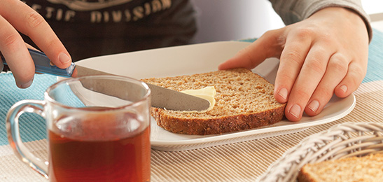 Het blijkt dat de aanbevolen hoeveelheden vitamine A en D moeilijk te halen zijn als je geen halvarine of margarine op je brood smeert. Daarom adviseren we om het brood te besmeren met halvarine of margarine.