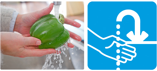 Was je handen zeker voor het eten en voordat je eten klaarmaakt. Maar ook na het aanraken van rauw vlees en rauwe groente, na toiletbezoek, na het verschonen van baby’s en na het aanraken van (huis)dieren. Was je handen met zeep en stromend water. Maak ook tussen de vingers en onder de nagels schoon. Spoel na het wassen de handen goed af. Droog je handen af met een schone, droge handdoek of papier.