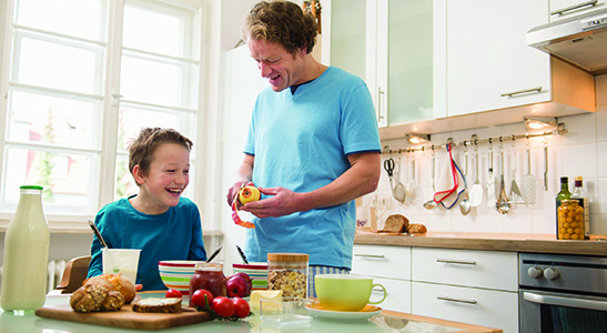 - Goed voorbeeld doet goed volgen. Ook kinderen hebben baat bij een goed ontbijt. Eet daarom in alle rust met kinderen aan tafel. Om tijd te besparen, is het handig om de tafel al ’s avonds te dekken. Dan hoef je alleen nog de gekoelde producten uit de koelkast te pakken.