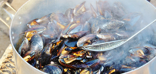 geflambeerde banaan, likeurbonbons en mosselen gestoofd in bier. In